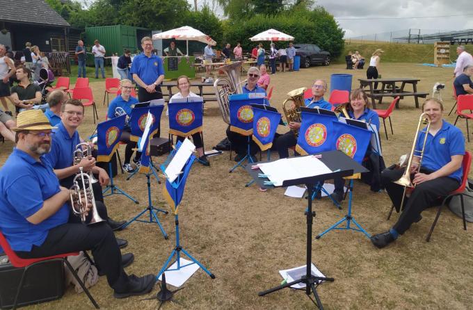 Blewbury Brass Band playing at the East Ilsley Sheep Fair – sharing music and fun (with guest from OUBB) with the local community at this historic event, which dates back to the 13th century when East Ilsley was a bustling centre for sheep trading.